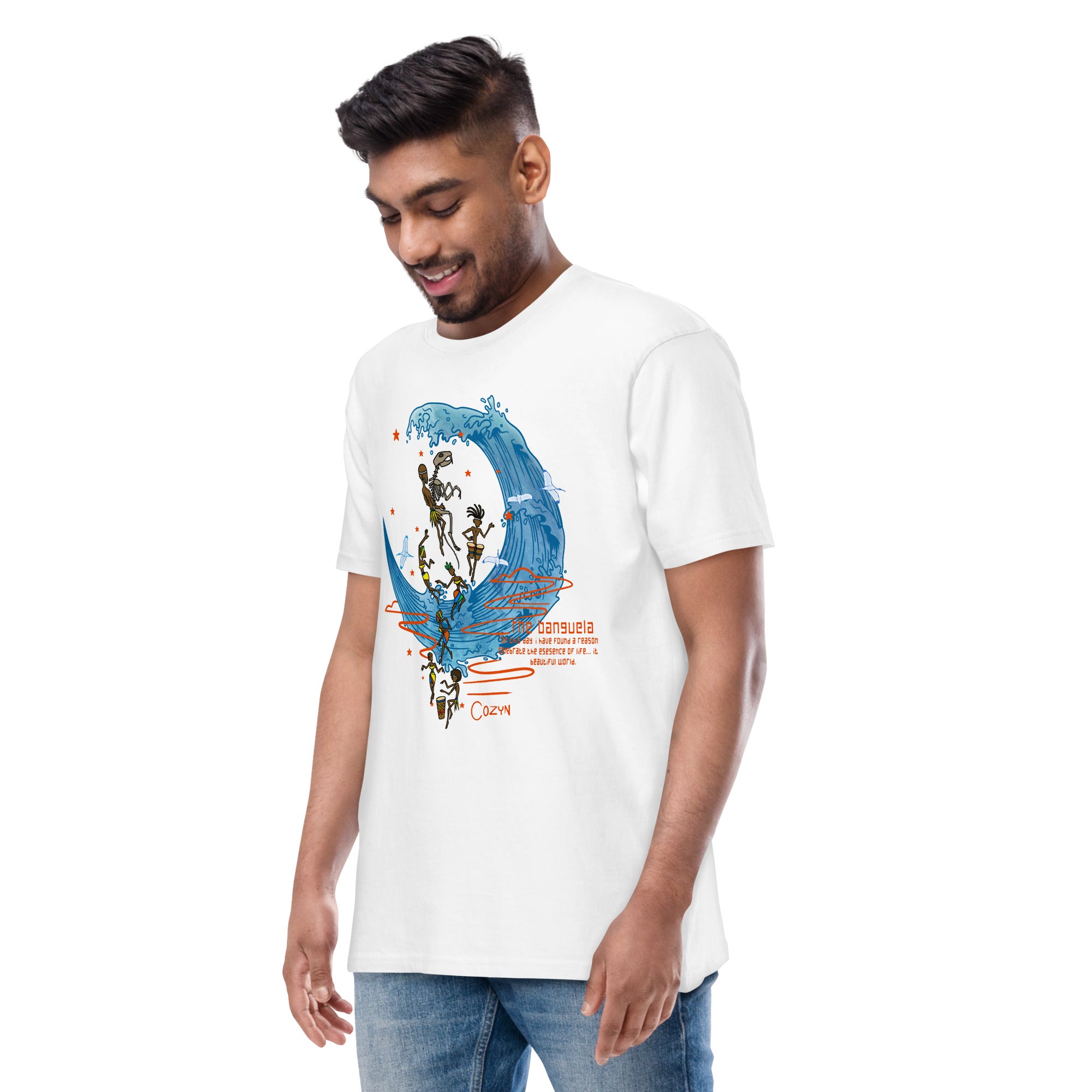 This premium tee is made from 100% combed ring-spun cotton, featuring a regular fit, side-seamed construction, and ribbed collar