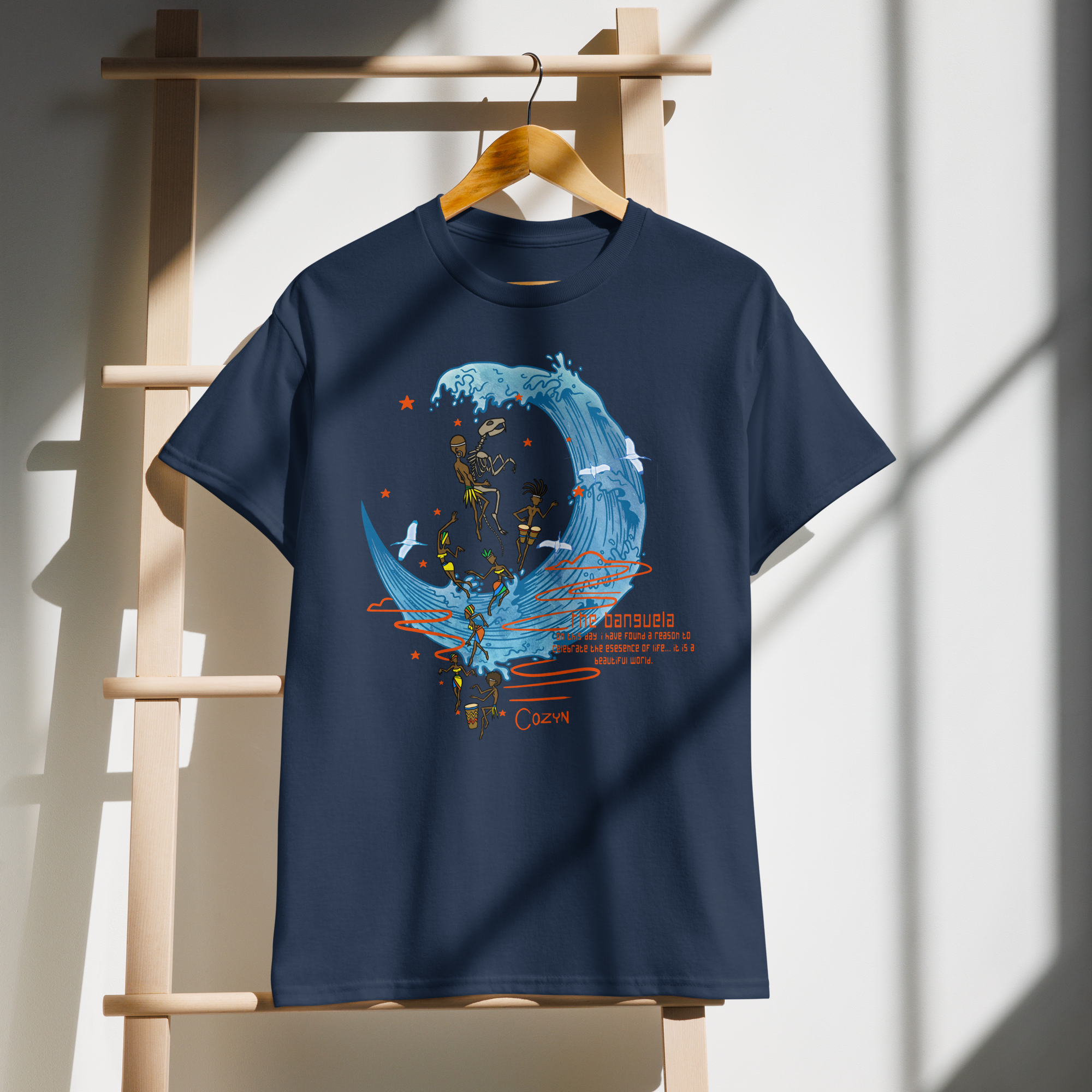 This Design captures the vibrant spirit of life and joy, celebrating the ‘Ceremony of Life’ of the Lobi people. This design honors the ancient ritual where warriors, in a powerful expression of fertility and connection, symbolize their essence through dance, embodying the celebration of love and community.